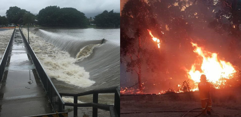 “Luckily water flows downhill so we expect the northern floodwaters to douse the southern bushfires in the next few days.”